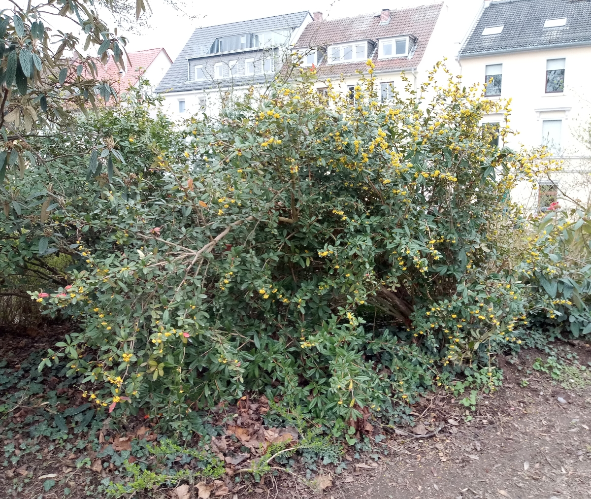 Julianes Berberitze, aus China stammend, ist ein immergrüner, sehr dicht verzweigter Strauch mit einem überwiegend aufrechten Wuchs und einer Höhe bis etwa 3 Meter, anzutreffen in Europa als Ziergehölz in Gärten bzw. Parkanlagen.