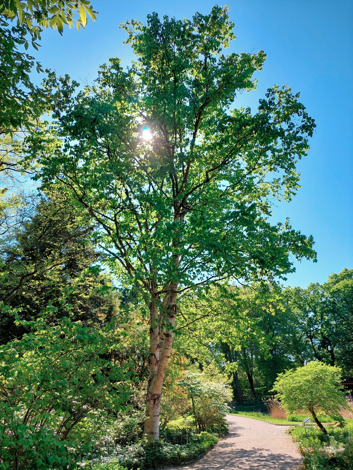 Mit überwiegend im spitzen Winkel aufsteigenden Hauptästen ist die Krone locker aufgebaut. Schon in ihrer Jugend folgt die Lindenblättrige Birke keiner strengen Kronenform.