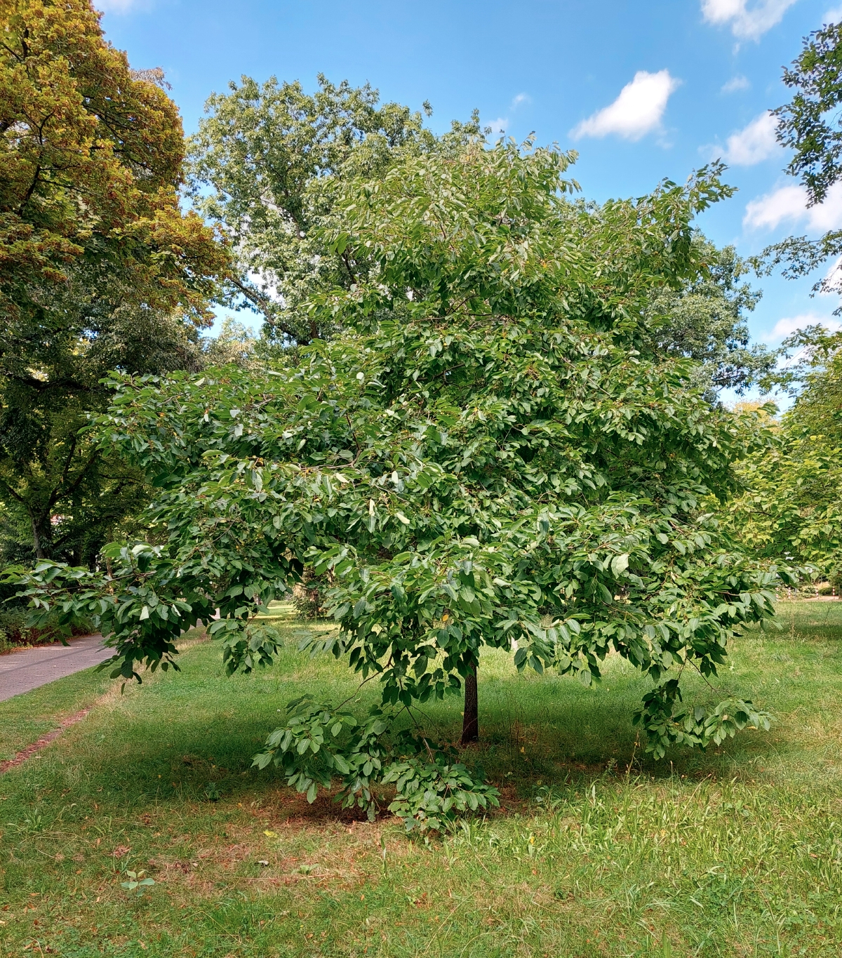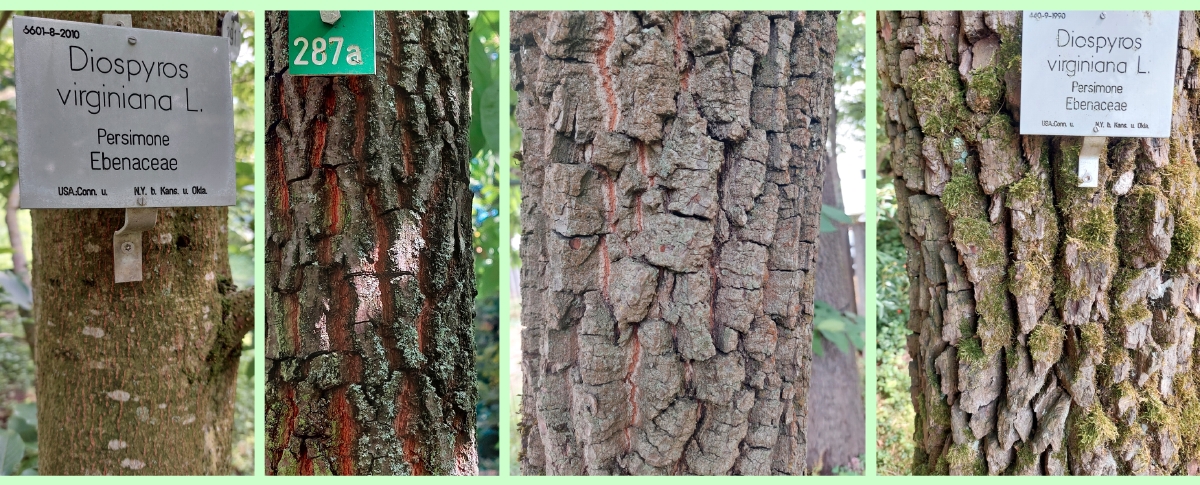 Persimonen zeigen schon recht früh eine für sie typische, tief wie klein-gefelderte und haftende Schuppenborke.