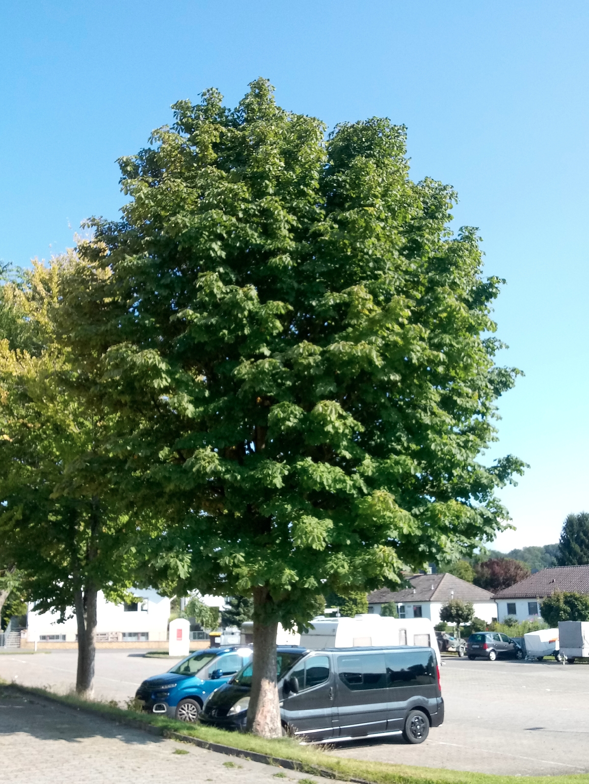 Zunächst ist doch etwas Erstaunen angesagt, wenn man im August vor einem Kastanienbaum steht – seinen Blättern nach eindeutig eine Gemeine Rosskastanie – und so überhaupt keine sich entwickelnden Früchte (also Kastanien) entdecken kann. Nun ist die Gemeine Rosskastanie einhäusig, womit auszuschließen ist, dass man es etwa mit einem „männlichen” Baum zu tun haben könnte. Aber was dann? Hat die Kastanie bei der Bestäubung einfach Pech gehabt?