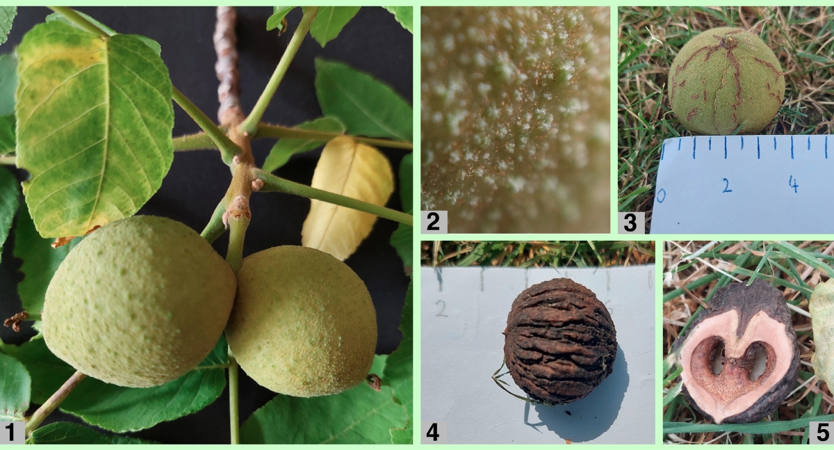 Im Gegensatz zu der Echten Walnuss öffnet sich der Fruchtbecher nicht am Baum selbst. Vielmehr fällt die gesamte Frucht bei Reife vom Baum und am Boden erst wird der Fruchtbecher schwarz wie lösbar. Es mag sich von diesem Phänomen der Name „Schwarz”-Nuss ableiten. Die vom Fruchtbecher eingehüllte, stark furchige Nuss, wenn man deren Schale denn erstmal „geknackt” hat — im Gegensatz zur Echten Walnuss sehr schwer! – gibt den eigentlichen Samen frei, der im Verzehr sehr schmackhaft ist.