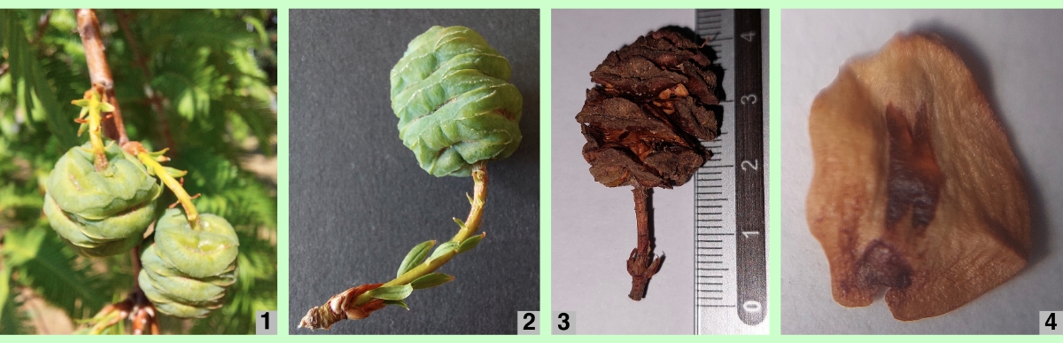 Der Urweltmammutbaum ist ein sommergrüner Baum, besitzt also im Winter keine Nadeln bzw. Blätter und lässt sich solcherart von anderen immergrünen Mammutbäumen deutlich abgrenzen. Er besitzt im Allgemeinen eine überwiegend kegelförmige Krone und erreicht eine Höhe bis etwa 30 Meter. Beheimatet in Teilen von China, ist er in unseren Breiten häufig in Gärten und Parkanlagen anzutreffen.Die nadelförmigen Blätter weisen eine Länge zwischen 1 bis 3 cm aus und sind an Kurztrieben nahezu gegenständig angeordnet. Es haben die Kurztriebe eine langgestreckte ovale Form, womit die Blätter hinsichtlich ihrer Länge am Triebbeginn sowie dem Triebende am kürzesten ausfallen, etwa 5-8 mm. Die Breite eines Blattes liegt bei ±2 mm. In lange Zeit anhaltendem frisch-grünhellen Farbton sind die Blätter an der Spitze überwiegend spitz, aber nicht stechend. Am Kurztrieb sitzen die Blätter direkt auf. Die zwischen 3-15 cm lang belaubten Kurztriebe treten am Langtrieb überwiegend fast gegenständig auf und fallen zum Winter hin komplett ab. An Langtrieben können auch einzelne nadelförmige Blätter in Erscheinung treten.